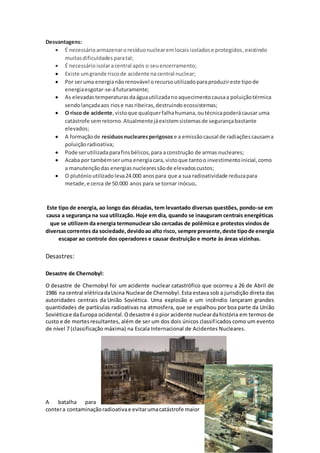 O documento discute a energia nuclear em Portugal, com foco no engenheiro José Delgado Domingos, um crítico da energia nuclear. Delgado Domingos opôs-se à construção de uma central nuclear em Portugal nas décadas de 1970 e 1980 e argumentou que o país deveria priorizar a eficiência energética em vez da energia nuclear.
