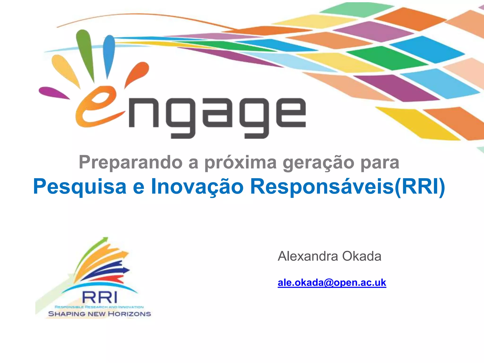 O documento discute a Pesquisa e Inovação Responsáveis (RRI) e como preparar a próxima geração para RRI. Ele define RRI como um processo transparente e interativo onde inovadores e sociedade se tornam mutuamente responsivos. Também discute como trazer RRI para a aprendizagem informal, não-formal e formal através do desenvolvimento de habilidades como identificar questões sócio-científicas e avaliar fontes.