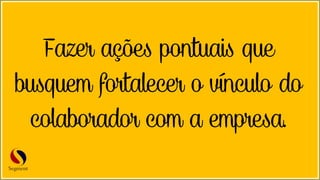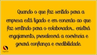 O documento discute o engajamento dos funcionários na organização, definindo-o como o laço emocional e psicológico que os colaboradores desenvolvem com o trabalho e a empresa. Quando os funcionários se engajam, eles internalizam os valores e propósitos da organização e isso os leva a terem uma postura mais cooperativa e comprometida. O engajamento também beneficia a empresa, pois funcionários engajados tendem a ser mais produtivos e eficientes.