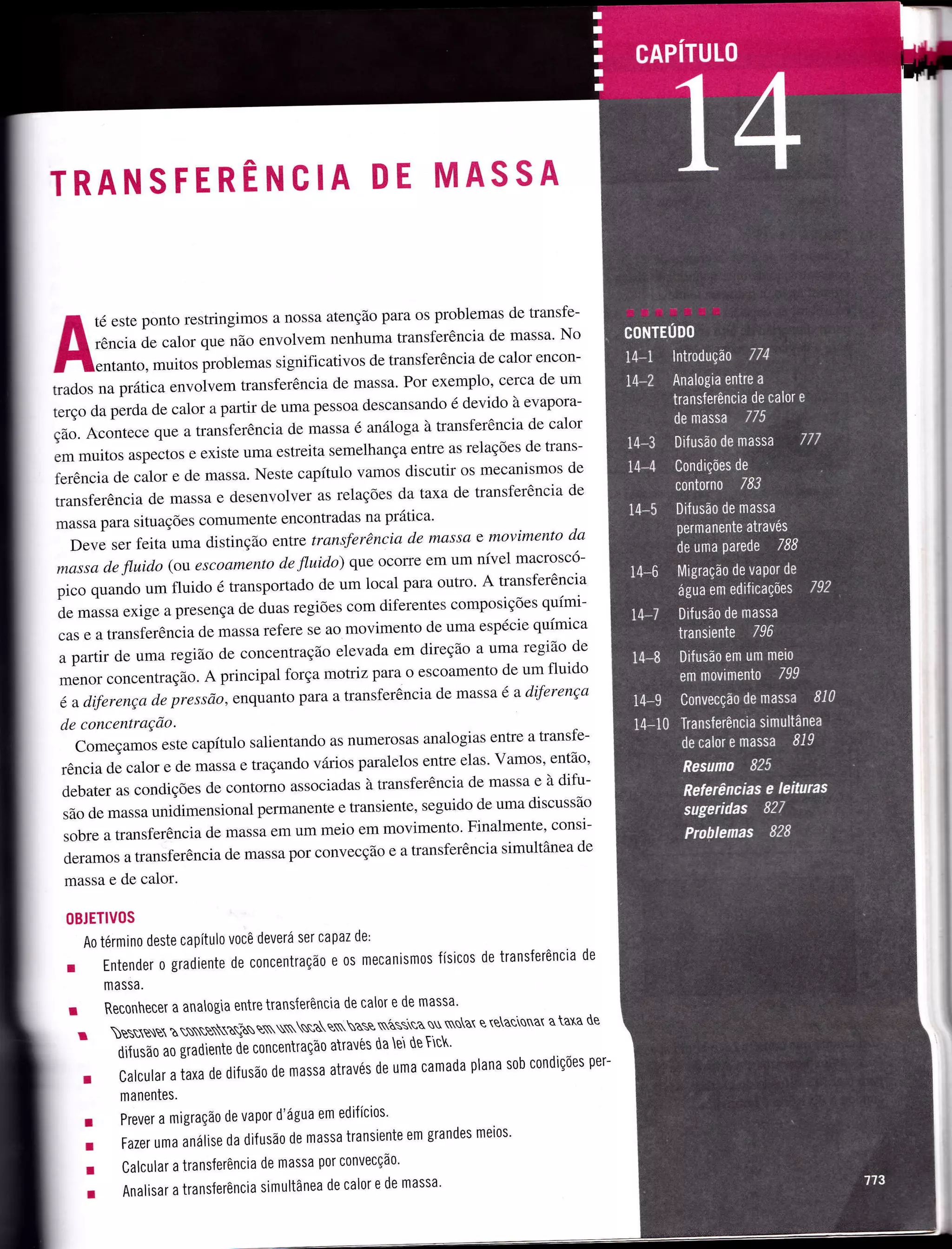 1) O documento discute a transferência de massa, que é análoga à transferência de calor em muitos aspectos. A força motriz para a transferência de massa é a diferença de concentração, assim como a diferença de temperatura é a força motriz para a transferência de calor.