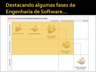 O documento discute problemas comuns em projetos e como a UML pode ajudar a resolvê-los. Os problemas mais frequentes são escopo não definido, mudanças constantes de escopo, riscos não avaliados e estimativas incorretas. A UML pode ajudar a definir requisitos e modelar soluções, especialmente nas fases críticas de levantamento de requisitos e modelagem. O documento também explica como a UML surgiu da necessidade de unificar diversos métodos de modelagem existentes.