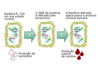 3) A clonagem molecular e a produção de seres transgênicos permitem a produção industrial de insumos humanos e o desenvolvimento de plantas mais resistentes.