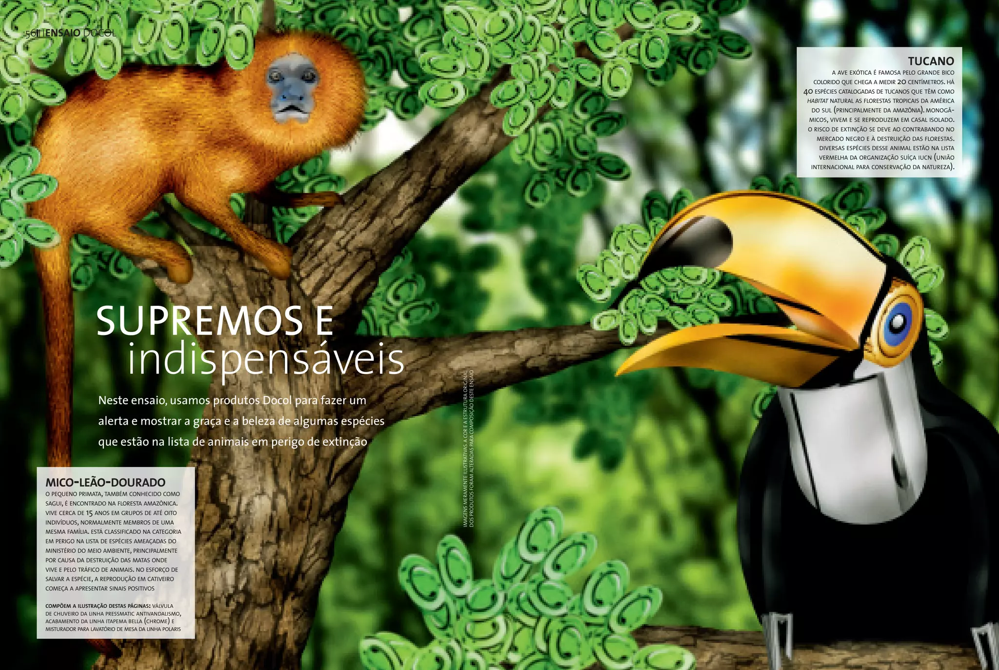 O documento descreve quatro espécies de animais em perigo de extinção: o mico-leão-dourado, a arara-azul, a tartaruga-marinha e a onça-pintada. Ele destaca os principais riscos que essas espécies enfrentam, como a destruição de habitat e o tráfico ilegal de animais silvestres, e alguns esforços de conservação em curso para protegê-las.