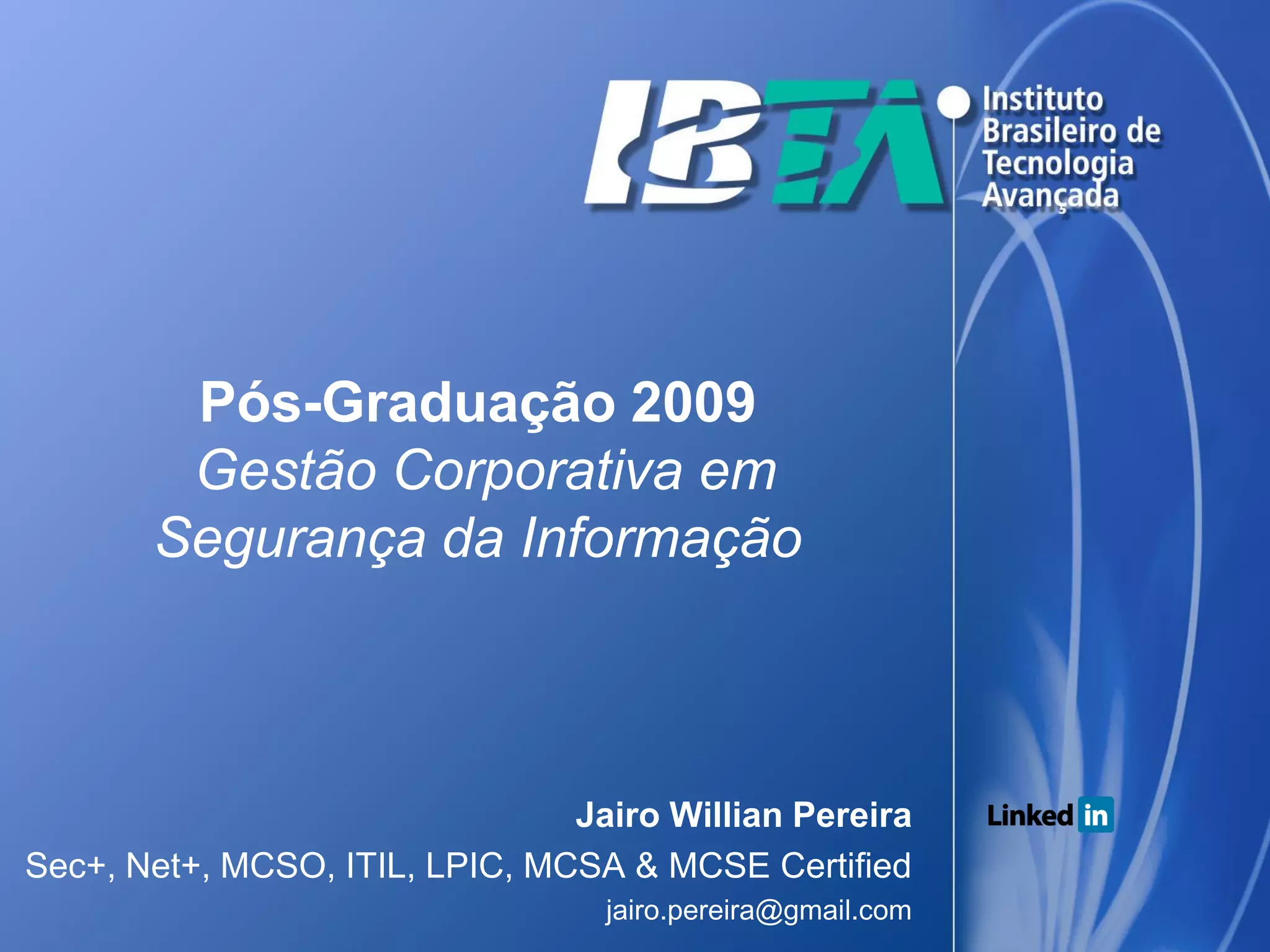 O documento apresenta um cronograma para uma pós-graduação em gestão corporativa de segurança da informação, abordando conceitos como gestão de riscos, normas de segurança e práticas de implementação. Ele explora a necessidade de um gerenciamento estruturado para a segurança da informação, enfatizando o tratamento de riscos e a importância de uma política de segurança. Além disso, discute a relevância de analisar o ambiente legal e o relacionamento com stakeholders para uma gestão eficaz.
