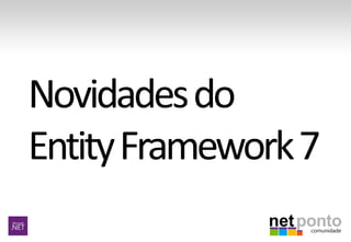 O documento resume as principais novidades da versão 7 do Entity Framework, como suporte a bancos de dados não relacionais, melhorias na geração de consultas SQL e separação em pacotes NuGet distintos. Também compara o Entity Framework com o NHibernate, destacando os pontos fortes de cada um.