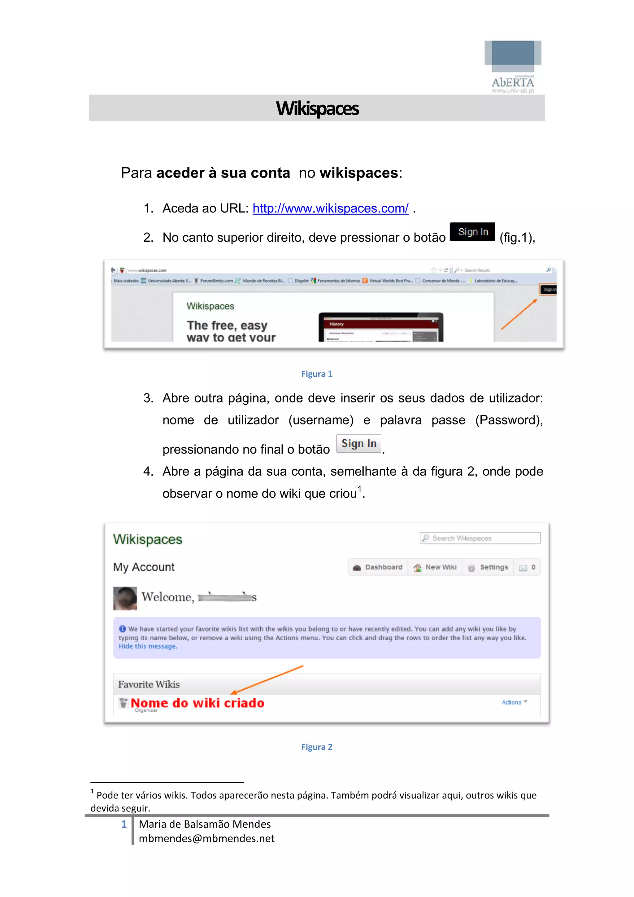 Para aceder à sua conta no wikispaces: