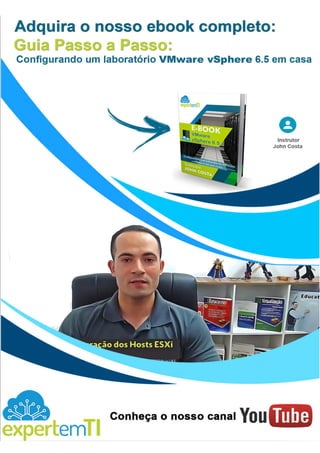 Este documento fornece instruções sobre como configurar um laboratório virtual completo utilizando o VMware Workstation e apresenta diagramas explicando a arquitetura do laboratório, incluindo hosts ESXi, VMs, switches virtuais, storage e rede. O autor também descreve cada etapa do processo de configuração e fornece especificações técnicas para ajudar o leitor a replicar o laboratório.