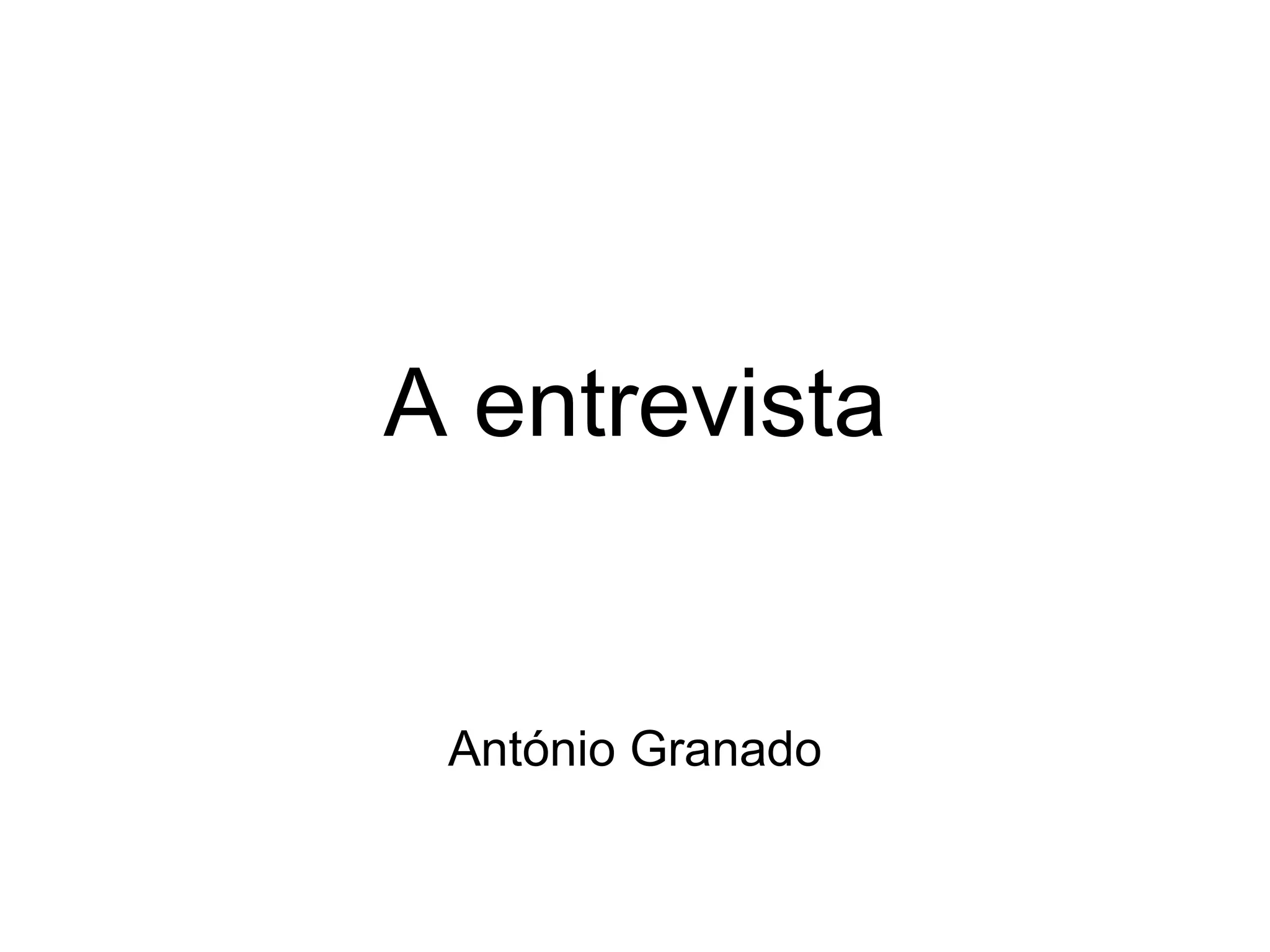 A entrevista é um gênero jornalístico no qual um diálogo entre o jornalista e uma pessoa é reproduzido por escrito. Existem diferentes tipos de entrevistas, como de declarações, personalidade ou questionário. Para realizar uma boa entrevista, é importante se preparar com um roteiro, fazer perguntas produtivas, ouvir atentamente as respostas e decidir como registrar o diálogo.
