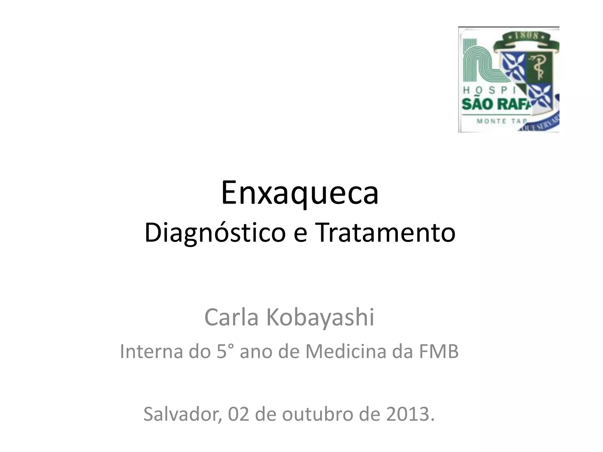 O documento apresenta o caso clínico de uma paciente de 25 anos com cefaleia há 6 meses. A suspeita diagnóstica é de migrânea sem aura evoluindo para migrânea crônica devido ao uso excessivo de medicamentos. O tratamento proposto é com topiramato ou outros antiepilépticos como primeira linha para prevenção das crises de migrânea.