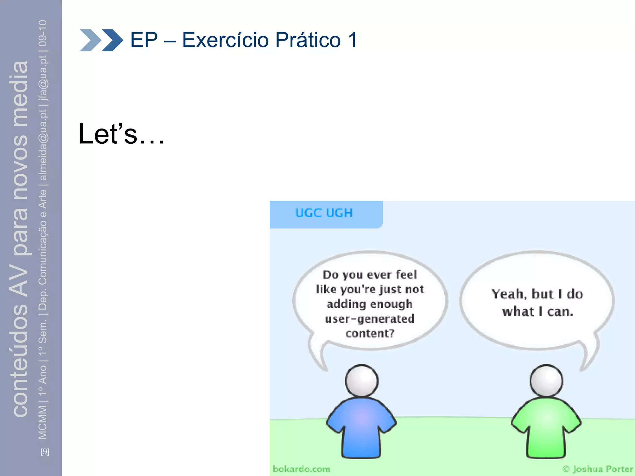 MCMM | 1ºAno | 1º Sem. | Dep. Comunicação e Arte | almeida@ua.pt | jfa@ua.pt | 09-10 EP – Exercício Prático 1