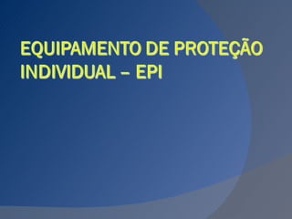 O documento discute vários tipos de equipamentos de proteção coletiva e individual (EPI) usados em obras de construção civil. Ele descreve EPIs como capacetes, óculos, luvas e máscaras que protegem a cabeça, rosto e corpo de riscos como impactos, produtos químicos e radiação. Também discute as responsabilidades dos empregadores e empregados em fornecer e usar corretamente EPIs.