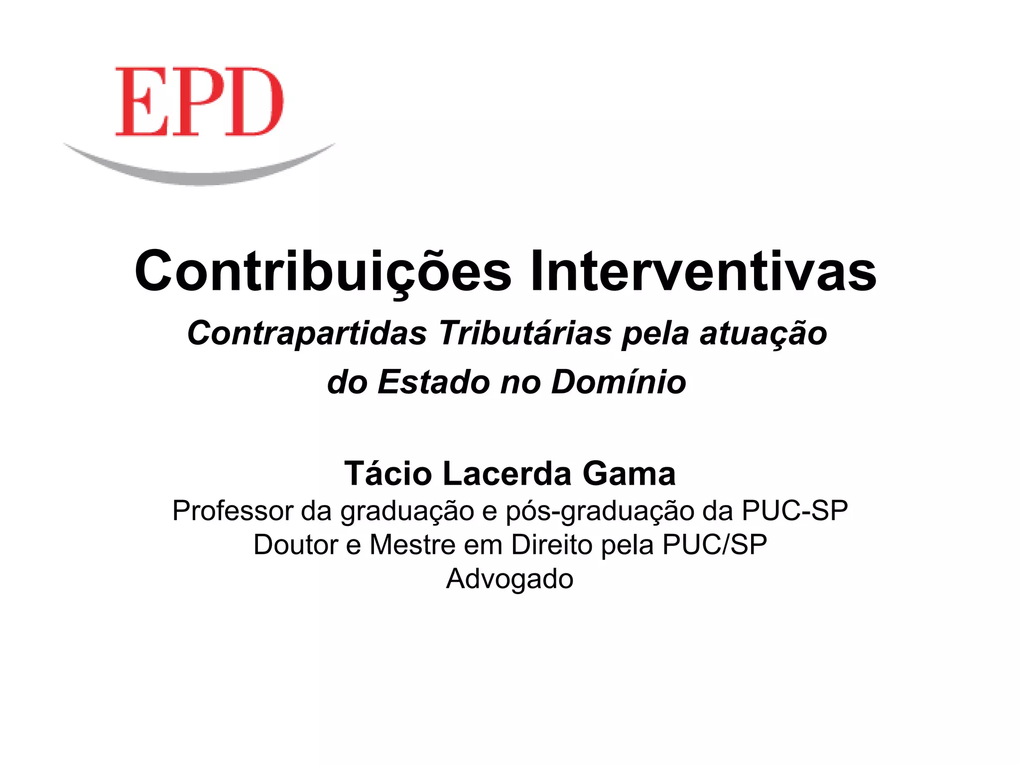 O documento discute o regime jurídico das contribuições interventivas e corporativas no Brasil. Apresenta os conceitos dessas espécies tributárias e analisa os elementos que compõem suas hipóteses de incidência e consequentes normativos, tais como sujeitos ativo e passivo, base de cálculo e alíquota. Também examina os princípios e imunidades aplicáveis a essas contribuições segundo a Constituição Federal.