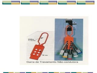 O documento discute medidas de segurança para trabalhos em espaços confinados, enfatizando a importância de treinar trabalhadores no uso correto de EPIs, fornecer EPIs gratuitamente, e usar EPIs adequados para cada situação de risco. Ele também lista equipamentos especiais e procedimentos de emergência necessários para garantir a segurança nesses ambientes.