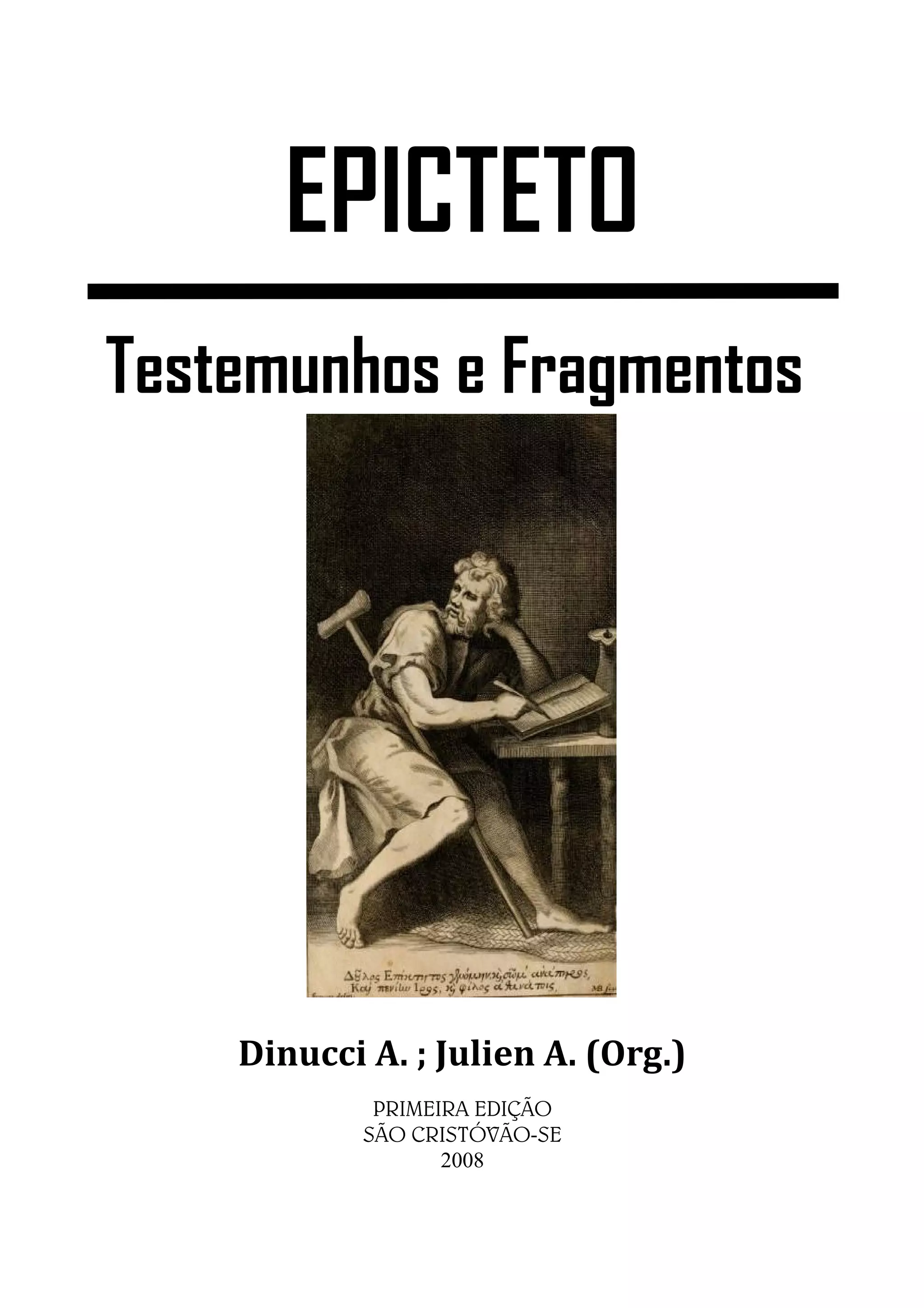 O documento descreve o contexto histórico e biográfico de Epicteto, um filósofo estoico que viveu no Império Romano nos séculos I e II d.C. Epicteto nasceu escravo na Frígia e viveu em Roma e Nicópolis, onde fundou sua escola filosófica. O texto fornece detalhes sobre a escravidão e a libertação na época e discute as possíveis circunstâncias da vida e carreira de Epicteto.
