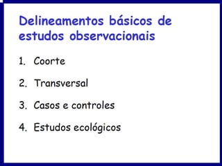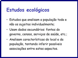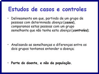 Este documento discute conceitos fundamentais de epidemiologia, como o estudo da distribuição e determinantes de doenças em populações. Apresenta breve histórico da epidemiologia, indicadores de saúde comumente utilizados e aplicações práticas da epidemiologia.