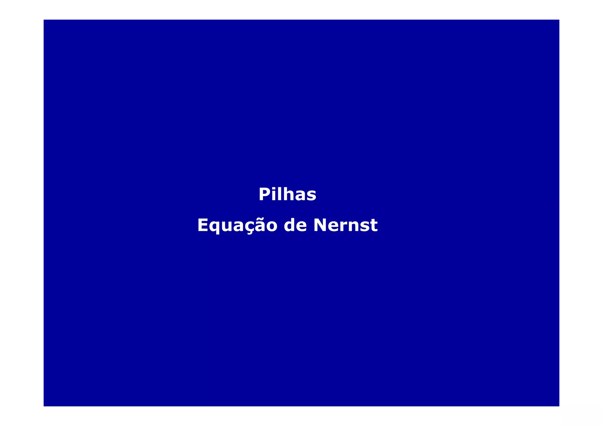 Este documento discute equações e conceitos importantes relacionados a pilhas, incluindo a equação de Nernst para determinar potenciais em condições não-padrão, experimentos para determinar valores de potencial padrão e concentrações iônicas, e o funcionamento de pilhas de concentração.