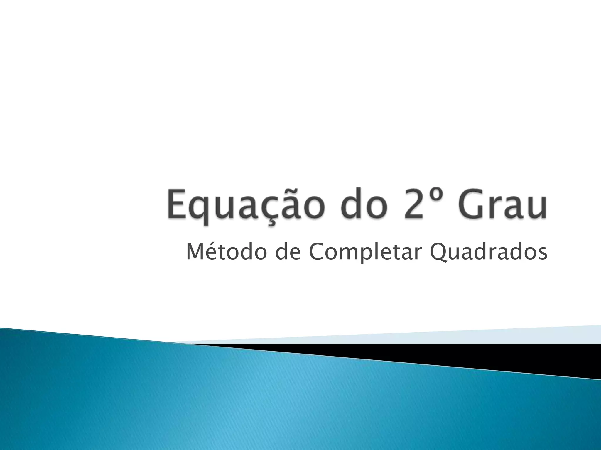 O documento explica o método de completar quadrados, mostrando graficamente como transformar um polinômio de segundo grau em uma forma quadrática perfeita. Através de dividir termos e somar áreas de retângulos e quadrados, chega-se à solução do problema proposto.