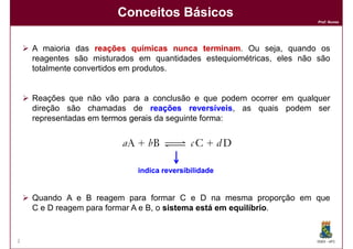 Este documento discute conceitos básicos de equilíbrio químico, incluindo: