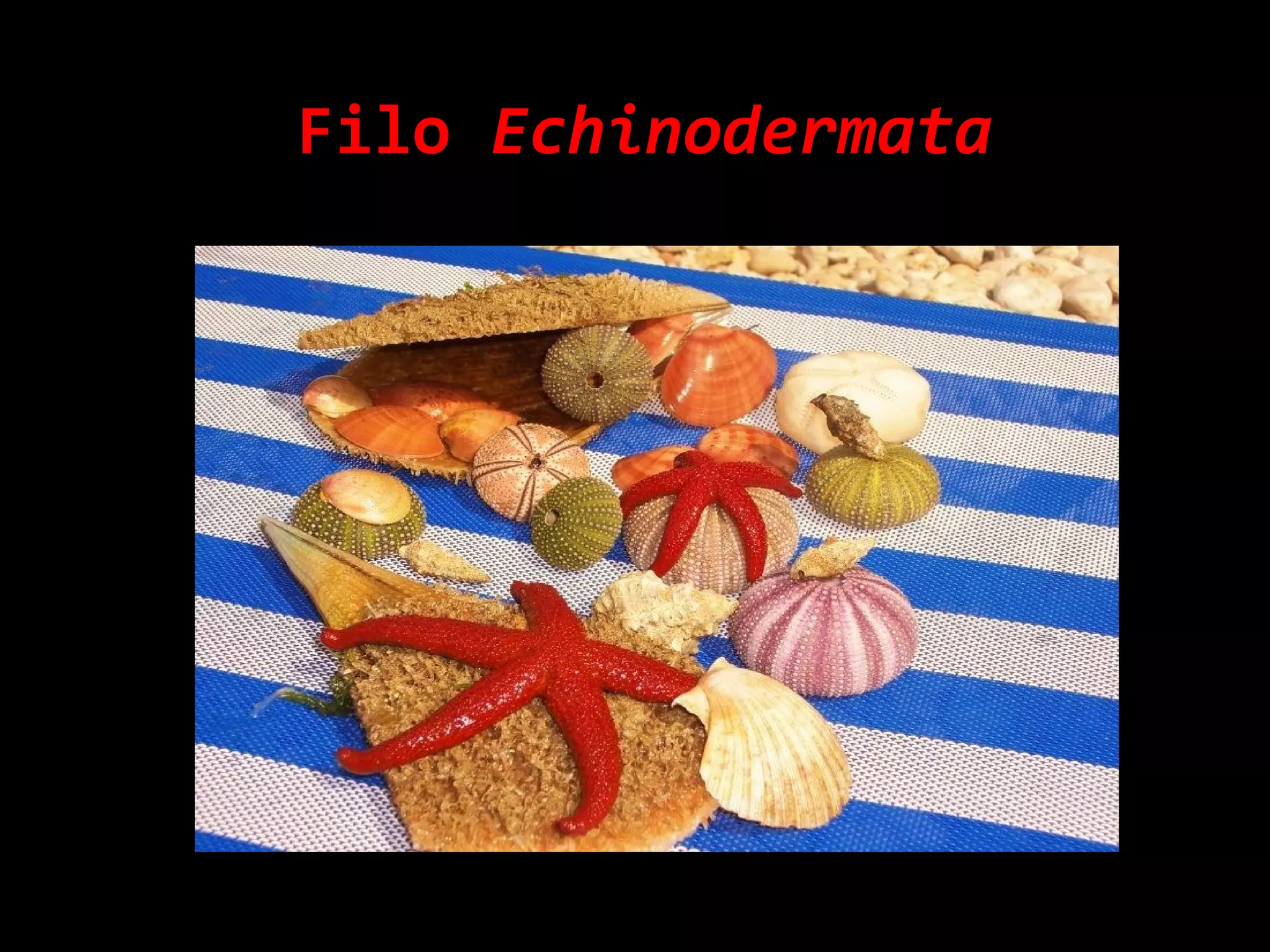 Os equinodermas são animais marinhos com simetria pentarradiada, como ouriços-do-mar e estrelas-do-mar. Possuem endoesqueleto calcário formado por placas e sistema ambulacral para locomoção e trocas gasosas. Apresentam reprodução sexuada por fecundação externa e ciclo de vida com estágio larvar bilateral.