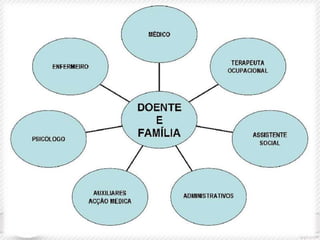 O documento discute a importância do trabalho em equipe multiprofissional na área da saúde. Ele explica que uma equipe multiprofissional é formada por profissionais de diferentes áreas, como médicos, enfermeiros e nutricionistas, que trabalham juntos para atingir objetivos comuns relacionados à saúde de pacientes. O documento também descreve os papéis e responsabilidades específicas de cada profissional de saúde em uma equipe, além de sugerir ações e estratégias para implementar com sucesso o modelo de equipe multipro