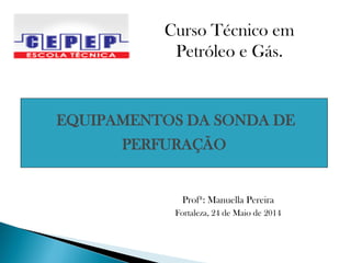 O documento descreve os principais equipamentos de uma sonda de perfuração, incluindo: (1) Os sistemas de sustentação de cargas, movimentação de cargas, rotação, circulação e monitoramento; (2) Os componentes destes sistemas como guincho, bloco de coroamento, mesa rotativa e cabeça de injeção; (3) Dois métodos alternativos de aplicação de rotação na broca: o sistema top drive e motor de fundo.