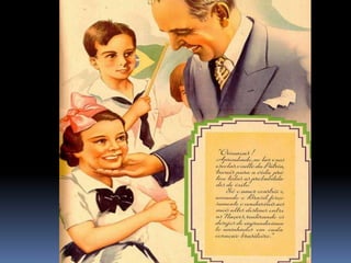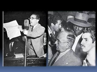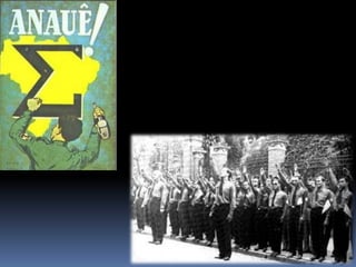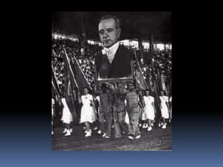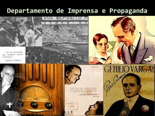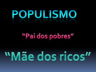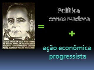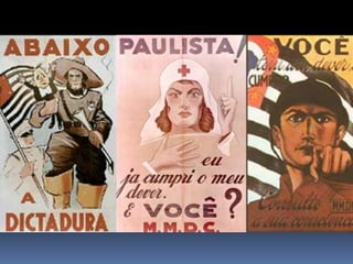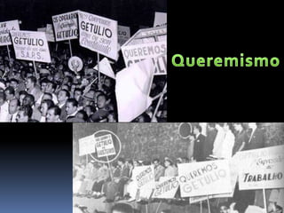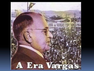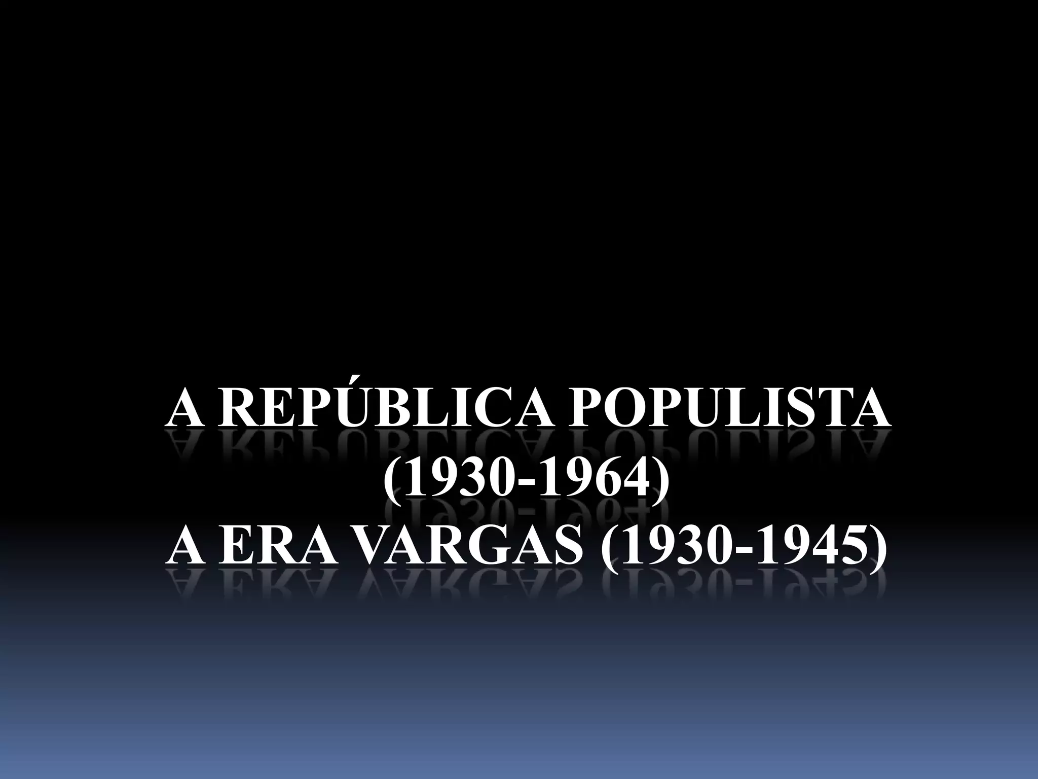 O documento descreve o período da República Populista no Brasil entre 1930 e 1964, começando pela Era Vargas (1930-1945). Getúlio Vargas chegou ao poder após um golpe em 1930 e governou de forma autoritária, primeiro como chefe provisório e depois como presidente constitucional sob a Constituição de 1934. Em 1937, Vargas instaurou o Estado Novo, uma ditadura que durou até 1945.
