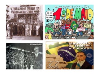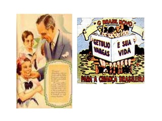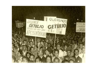 O documento resume a Era Vargas no Brasil entre 1930 e 1945. Durante este período, Getúlio Vargas liderou o país primeiro como chefe de um governo provisório e depois como presidente constitucional e ditador. Seu governo promoveu a industrialização, direitos trabalhistas e nacionalismo, mas também censura e perseguição política.