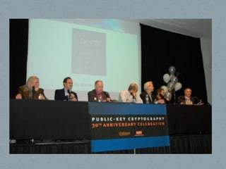 1) O documento discute a história e os conceitos fundamentais da criptografia moderna, incluindo o desenvolvimento das chaves públicas e sistemas como RSA.