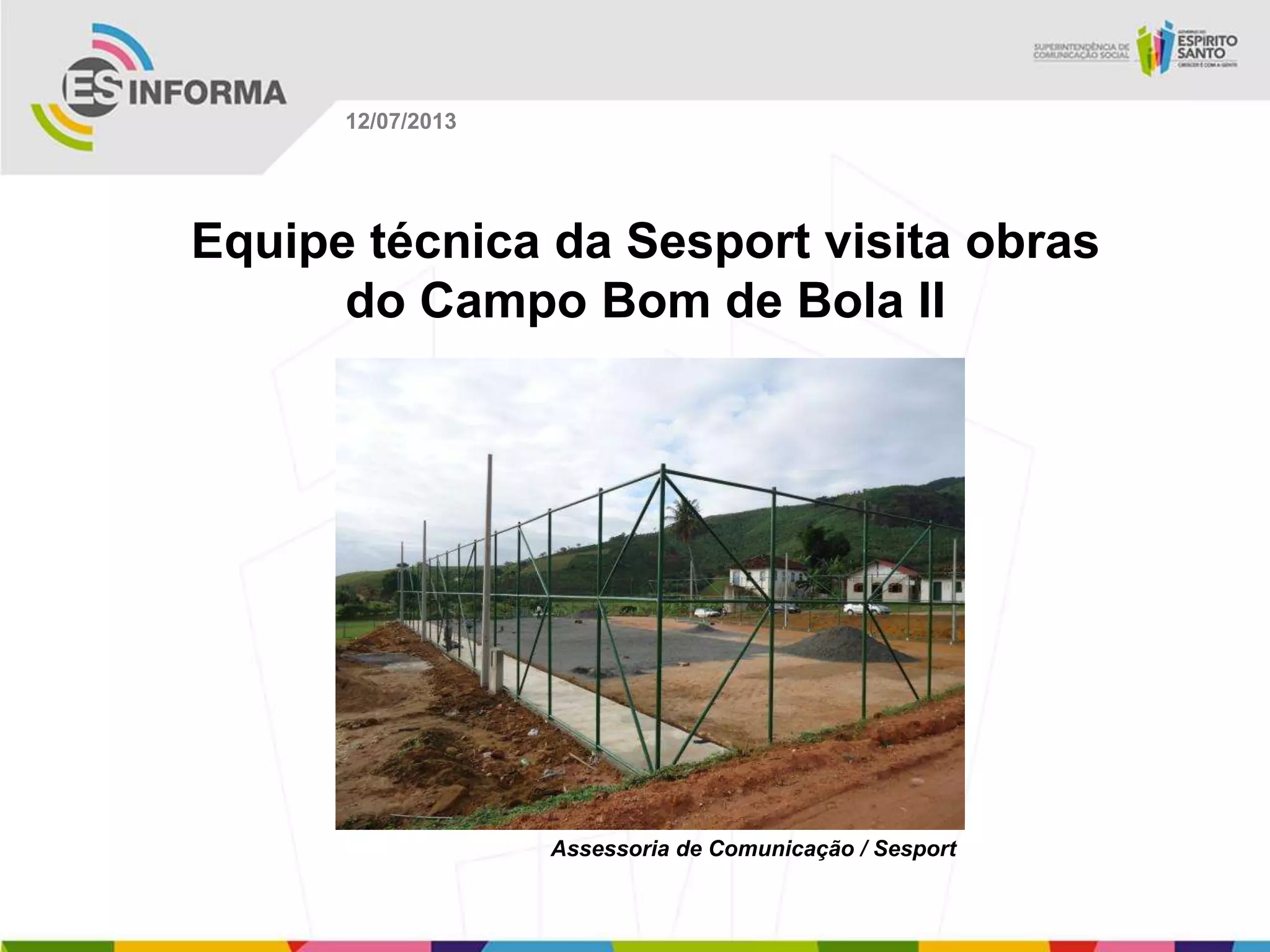 O documento resume notícias de vários órgãos do governo capixaba, incluindo visita a obras esportivas, linhas de crédito para panificação, qualificação profissional para detentos, bônus para professores, patrulhamento rural policial e programação de aniversário de biblioteca pública.