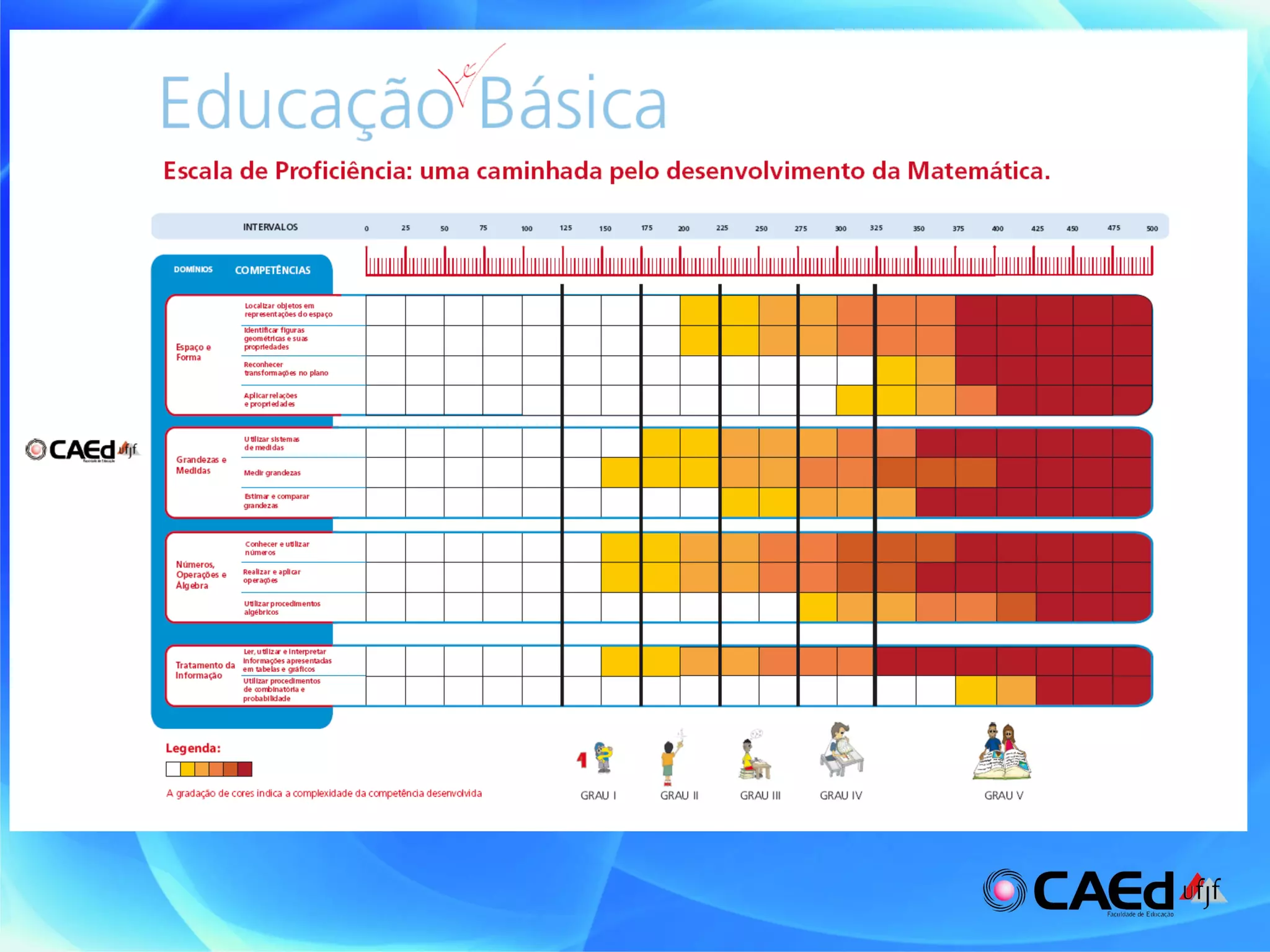 Este documento lista seis competências essenciais em matemática: 1) Identificar figuras geométricas e suas propriedades, 2) Medir grandezas, 3) Realizar e aplicar operações, 4) Ler, utilizar e interpretar informações apresentadas em tabelas e gráficos.