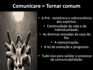 - O documento descreve a Escala Espírita de Allan Kardec, que classifica os espíritos em três ordens principais de acordo com seu nível evolutivo, julgado pela maturidade de sua comunicação e qualidades intelectuais e morais. A primeira ordem contém os Espíritos Puros, a segunda os Bons Espíritos e a terceira os Espíritos Imperfeitos.