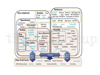 O documento discute as tendências de escalabilidade e armazenamento de dados, comparando SQL e NoSQL. Ele explica como os volumes de dados estão crescendo rapidamente com a Internet das Coisas e como bancos de dados como chave-valor, grafos e orientados a documentos ou coluna são melhores para Big Data do que SQL puro. O documento também discute serviços em nuvem e híbridos e como profissionais precisam ter habilidades multidisciplinares para lidar com a complexidade crescente.