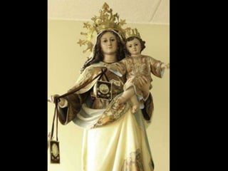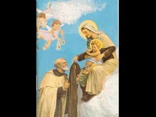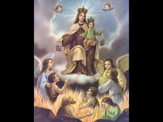 O documento discute o Escapulário do Carmo, um sinal de salvação e proteção recomendado por santos e papas. Nossa Senhora prometeu que quem morrer usando o Escapulário não sofrerá no fogo do inferno e poderá se beneficiar de indulgências plenárias. Ela também concedeu o privilégio de livrar as almas do purgatório no primeiro sábado após a morte.