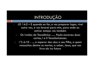 1. O capítulo descreve o arrebatamento da Igreja, que ocorrerá quando os crentes vivos e mortos forem transformados e levados ao encontro do Senhor nos ares.