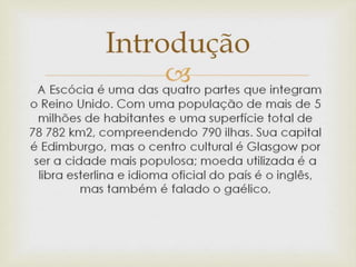 Trabalho realizado em 2011 que explica as principais características da Escócia.