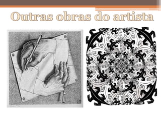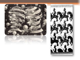 Maurits Cornelis Escher foi um artista gráfico holandês conhecido por suas xilogravuras que representavam construções impossíveis e explorações do infinito através de metamorfoses, rotações e simetrias. Apesar de não ter formação em matemática, a obra de Escher chamou a atenção de alguns matemáticos e ele se sentia mais próximo dos matemáticos do que dos artistas.