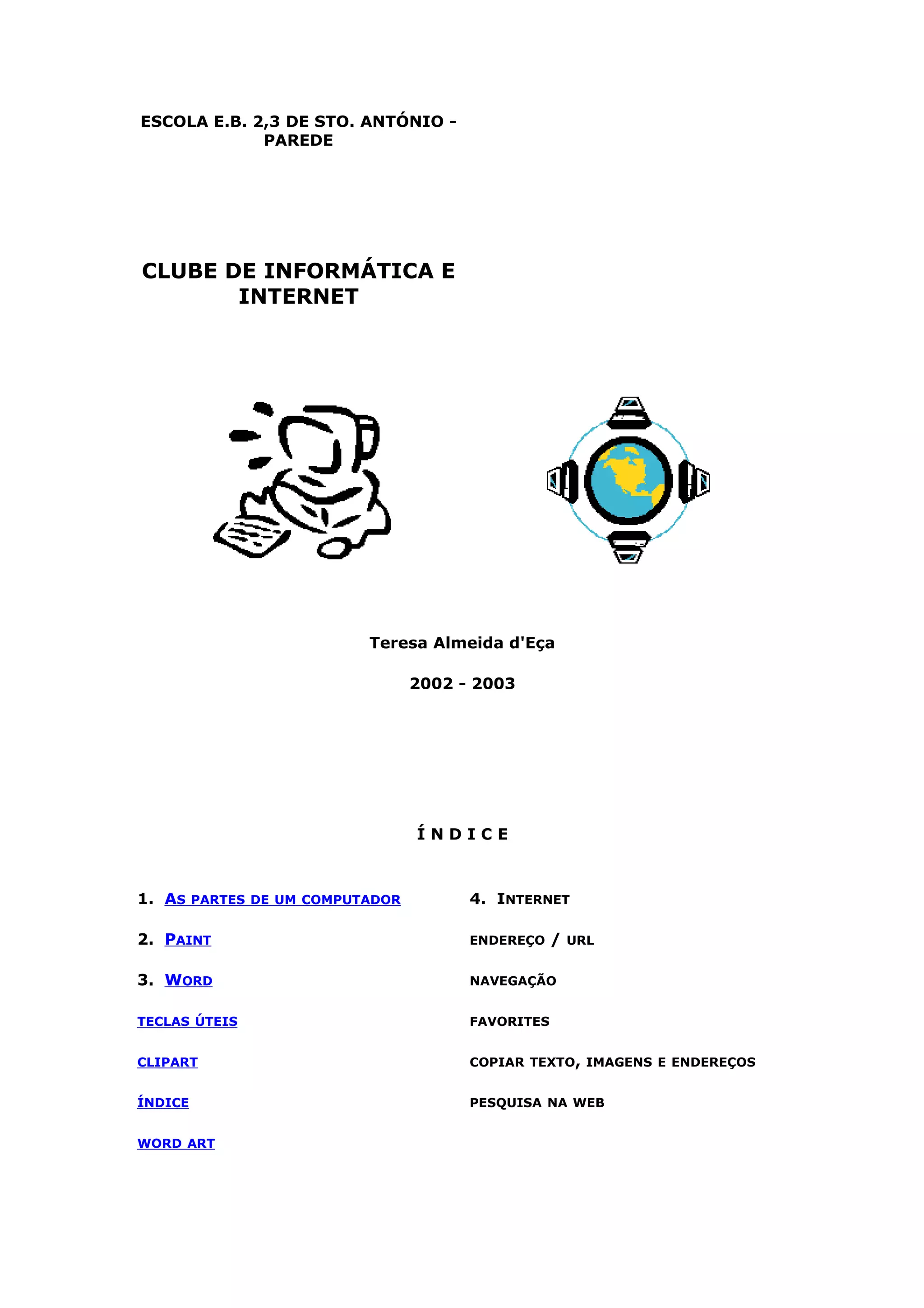 O documento descreve as principais partes de um computador, incluindo o monitor, torre, teclado e rato. Explica que a torre contém os programas e arquivos, enquanto o monitor exibe o conteúdo. Também menciona alguns programas comuns como Paint e Word, e conceitos como área de trabalho e barra de tarefas.