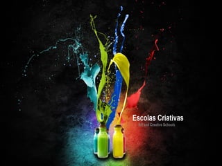 O projeto Escolas Criativas visa promover processos e atitudes criativas nas escolas através de formação para professores, apoio a projetos criativos e redes de colaboração. É organizado em três eixos: formação, apoio a projetos e criação de redes. As escolas participantes podem receber um selo de Escola Criativa após avaliação.