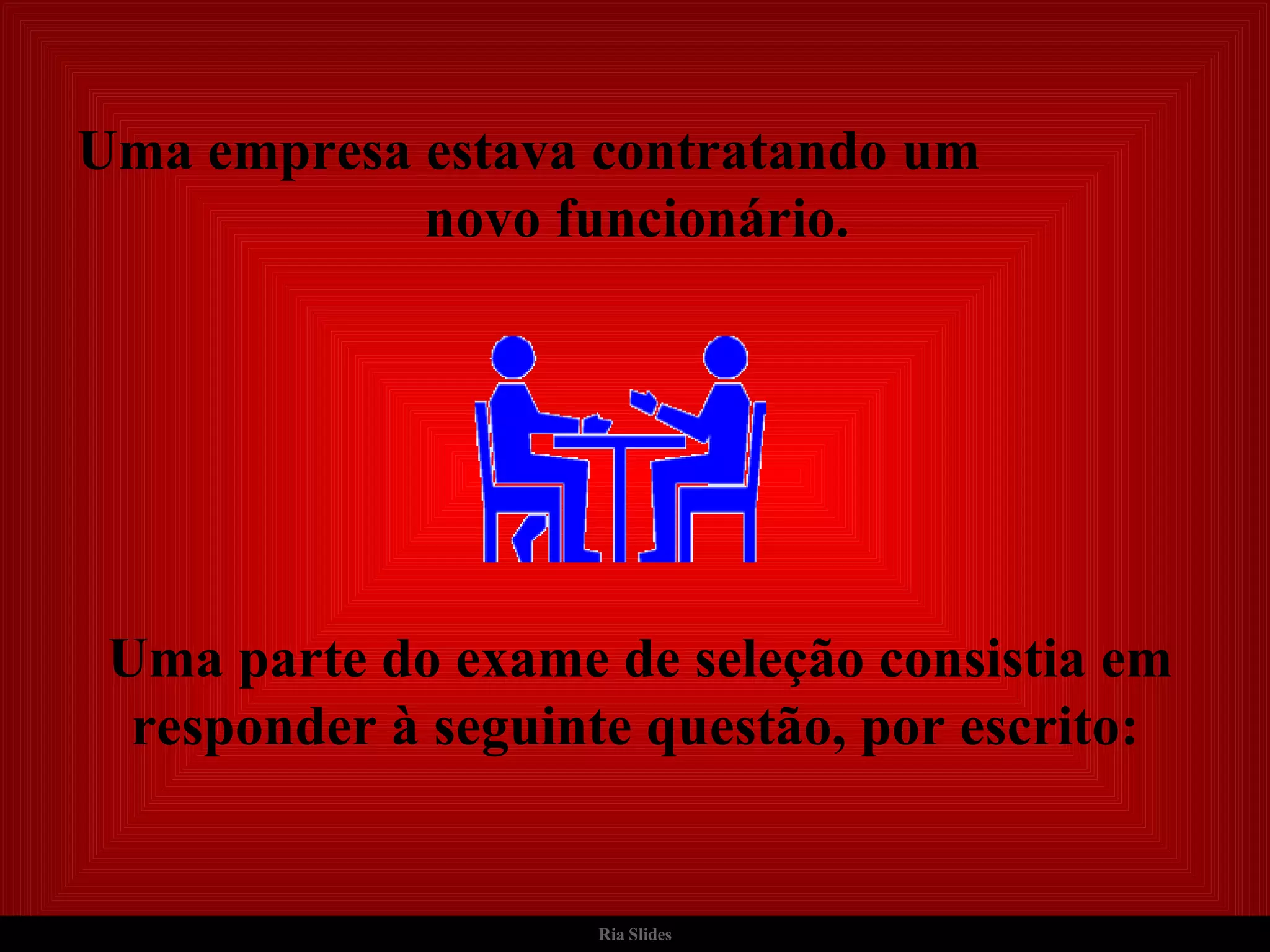 Uma empresa realizou um teste de seleção com candidatos que envolvia responder como lidariam em uma situação hipotética de emergência em que só poderiam salvar uma pessoa. Um candidato se destacou ao responder que daria as chaves do carro para o médico levar a senhora doente para o hospital, ficando para esperar o ônibus com a mulher amada.