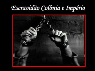 O documento descreve as formas de escravidão no Brasil colonial e imperial, com foco no trabalho forçado de negros escravizados no campo cultivando cana-de-açúcar e café, e nas cidades em diversas ocupações. Também menciona as leis de 1871 e 1885 que libertaram alguns escravos, as punições para aqueles que não trabalhassem, a alimentação precária e formas de resistência dos escravos como fugas e quilombos.
