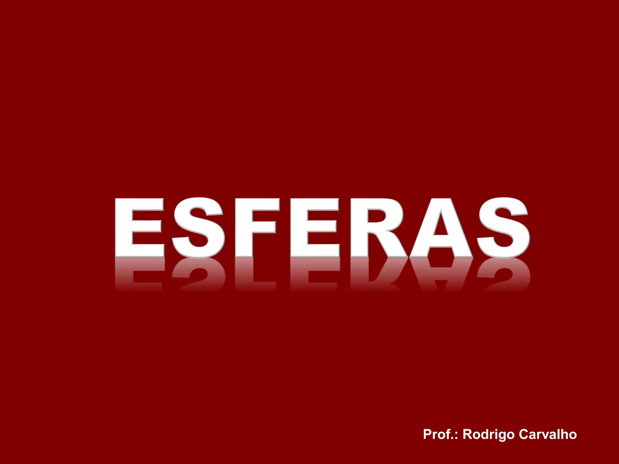 O documento discute esferas, definindo-as como o conjunto de pontos equidistantes de um centro, e fornece fórmulas para calcular a área da superfície esferica e o volume de uma esfera. Também apresenta exemplos de exercícios sobre seções esféricas, fusos esféricos e cunhas esféricas.