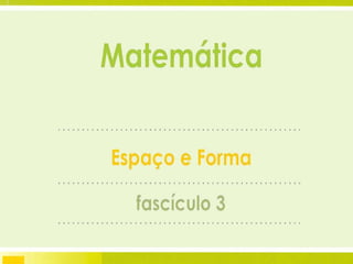 O documento discute conceitos e atividades relacionadas ao ensino de espaço e forma. Aborda a importância da exploração do espaço físico, da percepção e representação de formas geométricas. Também apresenta atividades práticas como classificação de sólidos, simetria, paralelismo e localização espacial.