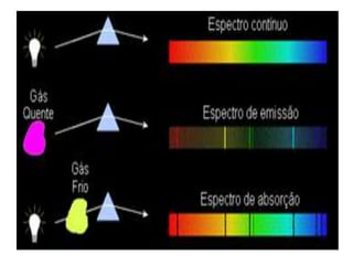 Espectroscopia refere-se à técnica de analisar a luz emitida ou absorvida por uma amostra para determinar suas propriedades físico-químicas. Seu desenvolvimento começou com o estudo da luz solar dispersa por prismas, culminando na descoberta de que cada elemento químico tem seu próprio padrão espectral único por Kirchhoff e Bunsen. Atualmente, a espectroscopia é amplamente utilizada em campos como a análise química e o estudo da estrutura atômica.