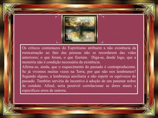 1) O esquecimento das vidas passadas é benéfico para que as pessoas possam se relacionar sem mágoas do passado e com um espírito de fraternidade.