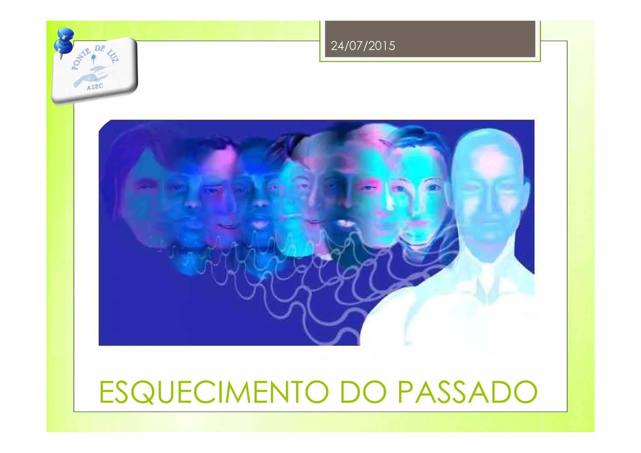 O documento discute porque esquecemos nossas vidas passadas ao renascermos. Explica que o esquecimento é providencial para que possamos viver livremente no presente sem lembranças perturbadoras do passado, e que nossa experiência anterior permanece gravada em nosso subconsciente, influenciando nosso caráter.
