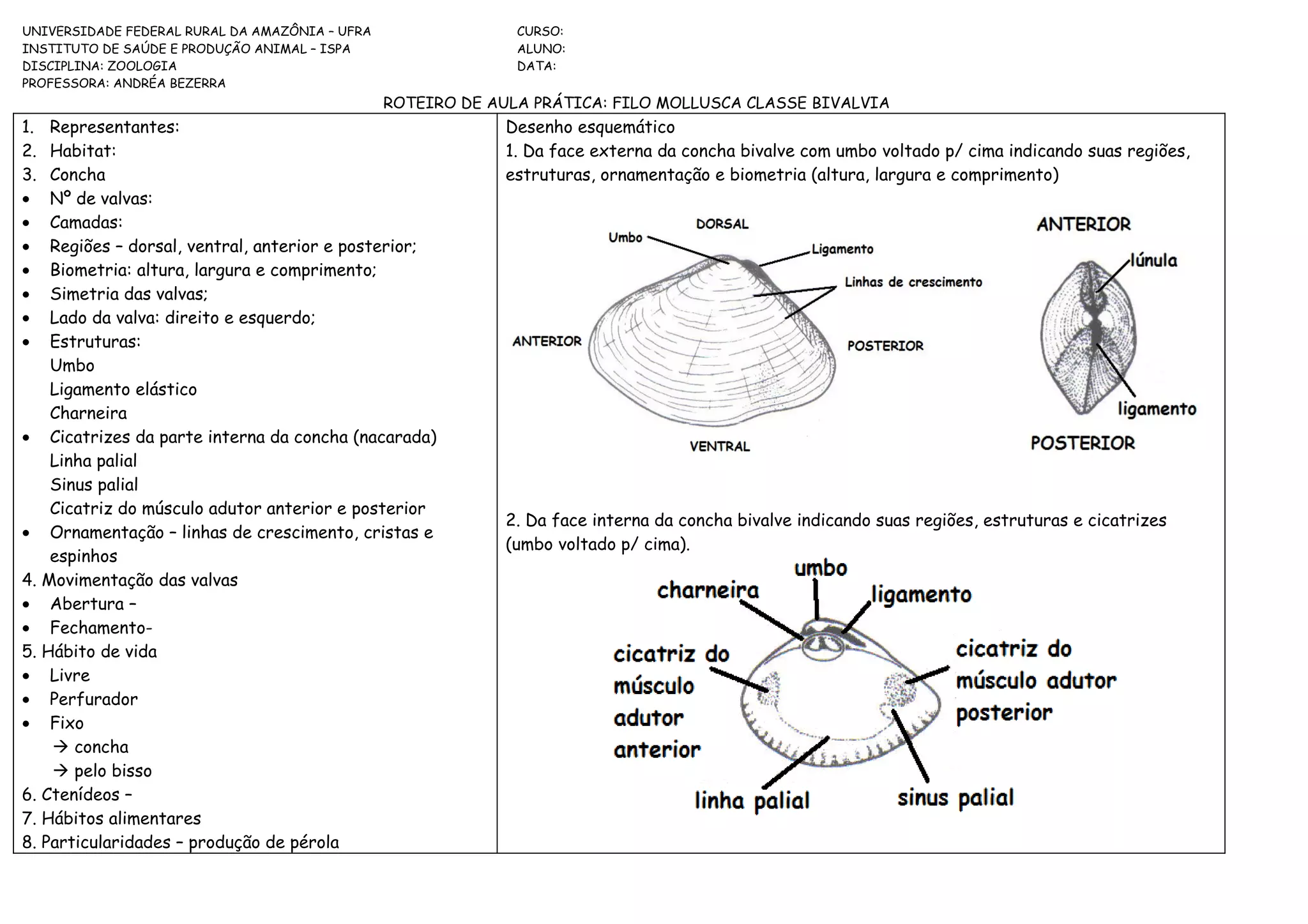 ROTEIRO DE AULA PRÁTICA: FILO MOLLUSCA CLASSE BIVALVIA