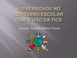O documento descreve um projeto realizado por uma professora na Escola Municipal Prefeito Dr. Amadeu Puppi com 30 alunos do 1o ano do 2o ciclo E. O projeto usou atividades com computadores na sala de aula e no Centro de Inclusão Digital para ensinar sobre diversidade cultural e combater a discriminação.