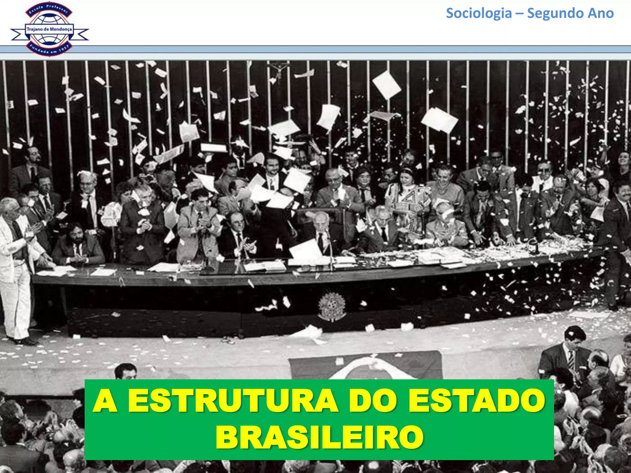O documento descreve a estrutura do Estado brasileiro, definindo seus elementos como governo, instituições políticas, sistema jurídico, uso da força, território e povo. Detalha as formas de governo como monarquia, república e parlamentarismo, e conceitos como democracia direta e representativa. Apresenta a divisão dos poderes executivo, legislativo e judiciário aos níveis nacional e estadual, com suas respectivas sedes.