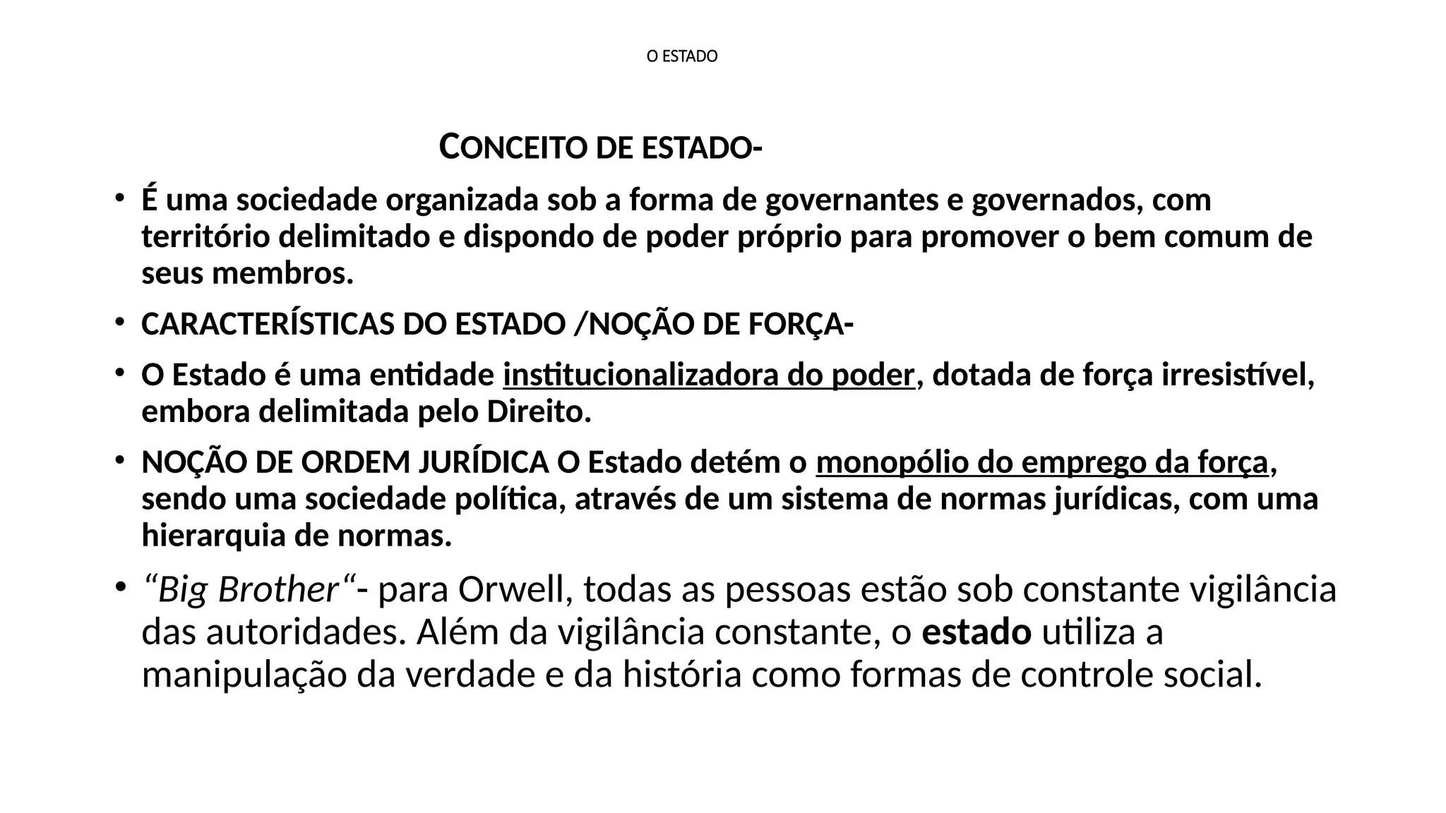 O documento discute o conceito de estado como uma entidade organizada que exerce poder sobre um território e sua população, abordando diferentes formas de autoridade política e dominação conforme os pensamentos de diversos teóricos como Marx, Hegel e Weber. Além disso, apresenta as características das formas de governo, as classificações de poder e as distinções entre regimes políticos, incluindo democracia e autoritarismo. O texto também delineia a natureza dos partidos políticos dentro do sistema jurídico brasileiro, classificando suas estruturas e ideologias.