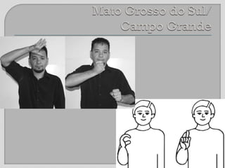 O documento lista três referências bibliográficas sobre a Língua Brasileira de Sinais (Libras): um livro didático publicado pelo governo de Goiás, e dois volumes de um dicionário enciclopédico ilustrado trilíngue da Libras publicado pela USP.